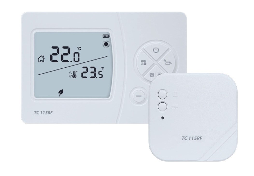 | SALUS TC115RF je bezdrôtový, týždenný, izbový termostat. Je vybavený bezdrôtovým čidlom, ktorý komunikuje s termostatom cez 433MHz RF signál. Náhrada za TC105RF