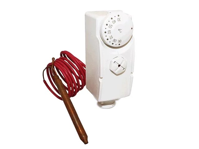 - je termostat s externým kapilárovým čidlom, vhodný najmä pre nastavenie teploty v rozsahu 30-90 ° C - pri nastavovaní požadovanej teploty možno využiť poistku proti nastavenia nežiaduce teploty neoprávnenou osobou - termostat má prepínací kontakt, možno ho teda využiť pre vykurovacie aj chladiace systémy
