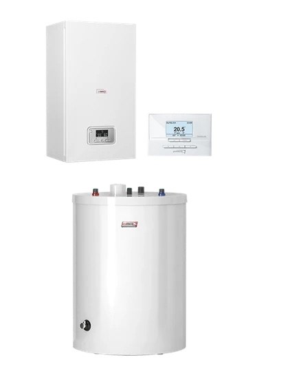 Zostava elektrokotla RAY na vykurovanie vášho domu a prípravu teplej vody v prídavnom zásobníku FE120BM s objemom 117 litrov je spoľahlivá voľba pre domácnosť s nižšími nárokmi na teplú vodu. Je vhodný k radiátorom aj podlahovému vykurovaniu. Ovládanie kotla a zásobníka je možné pomocou eBUS komunikačného regulátora Thermolink P, ktorý je súčasťou zostavy.